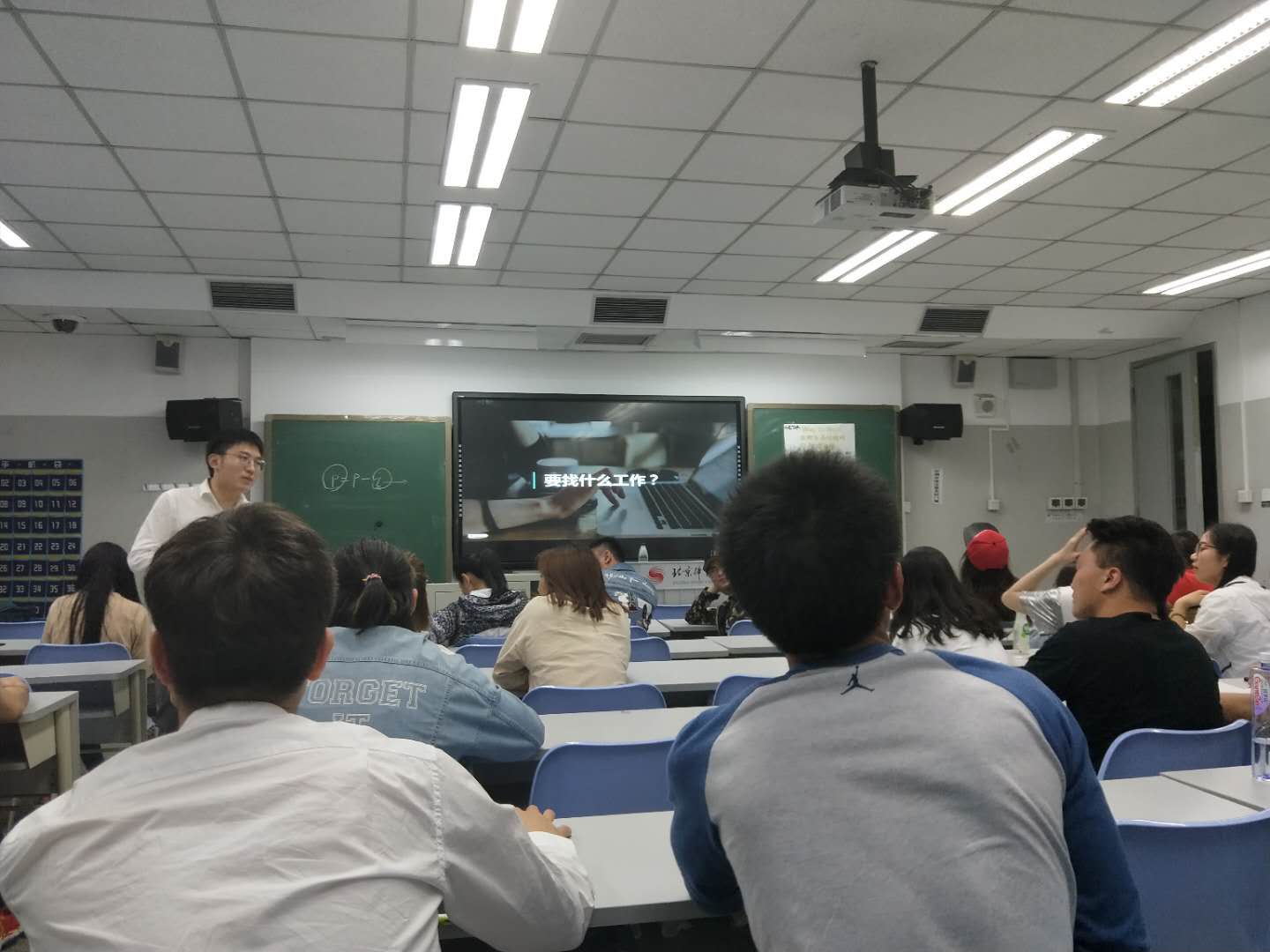 孙小峰经理的培训主题为“规划未来,赢得精彩”,讲述了很多优秀运动员的职业生涯案例,通过 “我是谁”、“我的规划是什么”等单元告诉学生为什么要做职业规划,怎么做职业规划,这期间同学们积极参与回答问题,将培训推向了高潮。接下来,对人力资源服务行业有较为全面认识的FESCO Adecco 产品顾问——杨晗老师,为我们介绍了跨专业找工作的方法及应对各种面试的技。最后,两位老师也分享了自己的人生职业经历,对同学们提出了期望。本次讲座从晚上七点开始持续了约两个小时,讲座结束后,仍有同学意犹未尽地和老师们进行沟通。