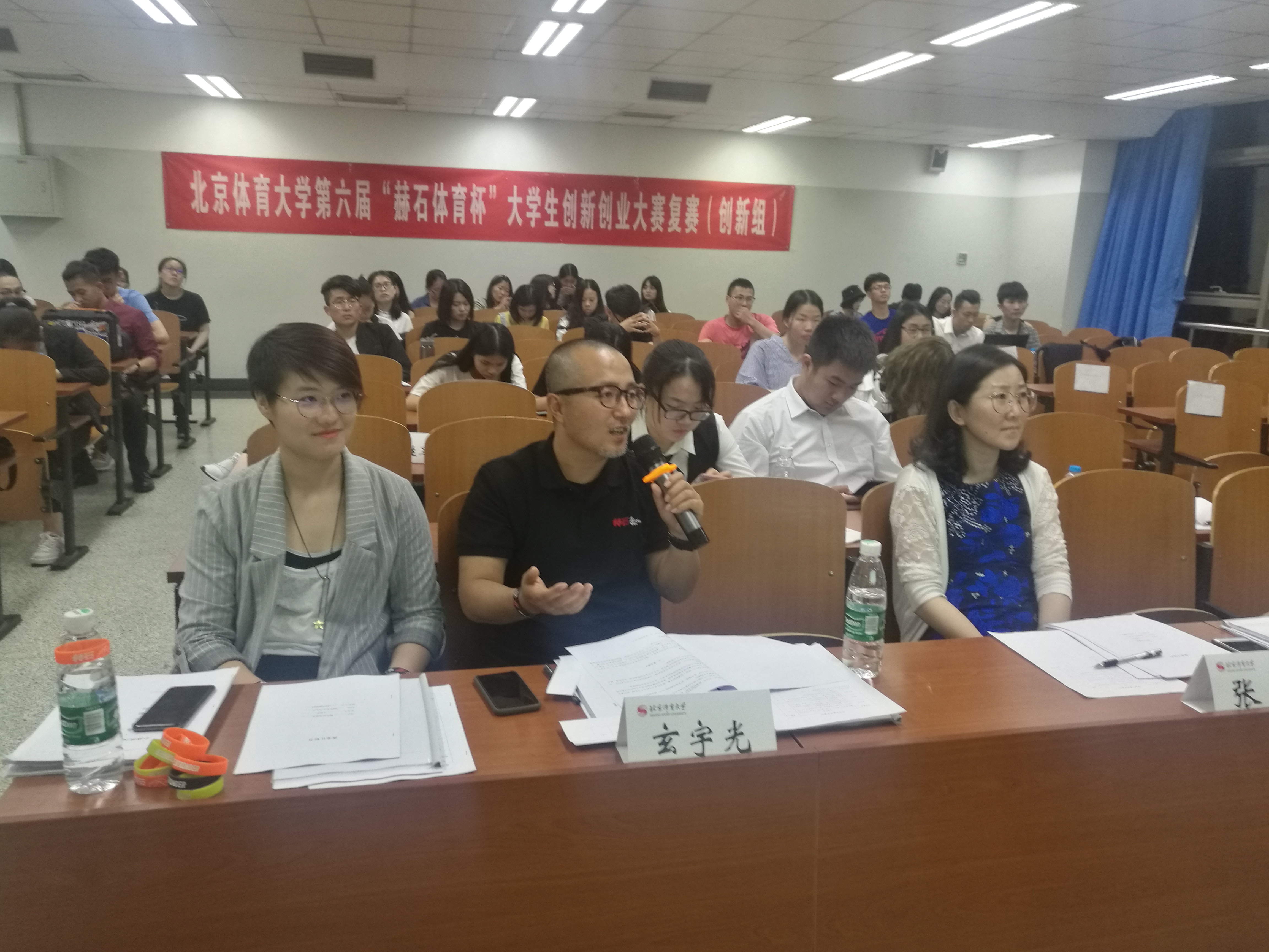 北京体育大学第六届“赫石体育杯”大学生创新创业大赛暨2018年北京地区高校优秀大学生创业团队评选正在如火如荼的进行中,今年同学们的参赛热情分外高涨,初赛报名54个项目团队,200余名学生参与其中,经过初赛评审,20个创业项目进入到复赛中。复赛于5月17日在教学楼312、313教室举行。经过评审,最终创业组:优智体能中心残疾人体育公共服务项目、北京施丹卓体育科技有限公司、北京企鹅少年科技、北京斌心教育科技有限公司、创新组蘑菇运动康复、洋葱体能、社区集装箱式创意健身房、动臻格中医运动康复工作室8个项目进入到5月24日晚7:00在大学生活动中心举行的决赛中。