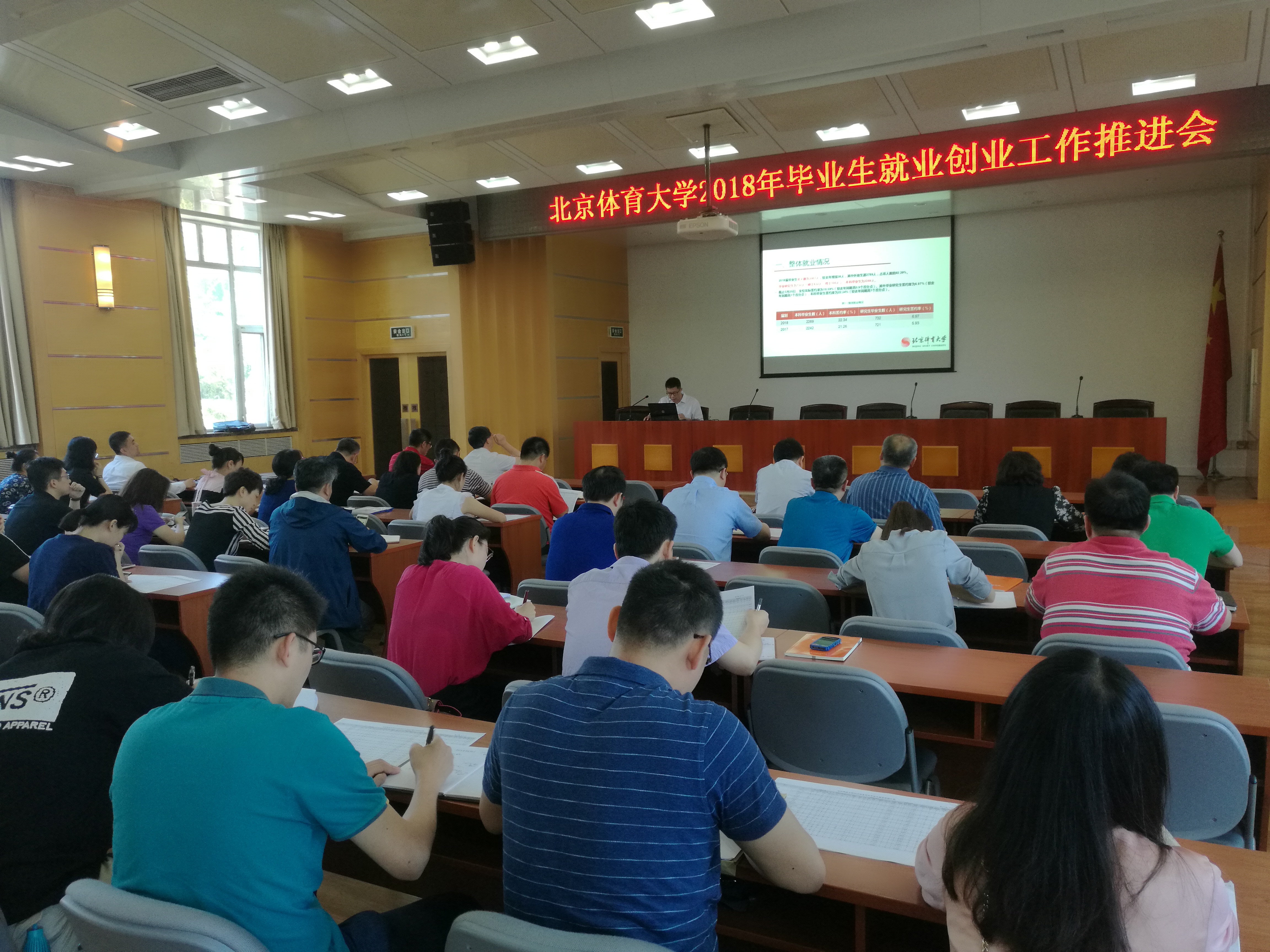 2018年5月30日,北京体育大学2018年毕业生就业创业工作推进会在北办公楼302室召开,副校长高峰出席会议并讲话,各学院领导及毕业年级辅导员,招生与就业工作处全体成员参加会议。会议由招生与就业工作处处长周俊主持。