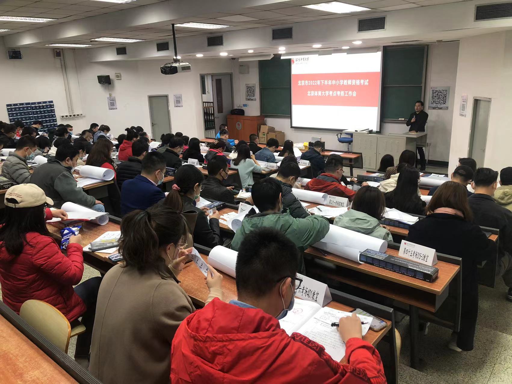 2022年10月29日,北京市2022年下半年中小学教师资格考试举行,我校圆满完成组考任务。本次考试,北京体育大学考点共有考生1812人,全部为本校在籍学生,全天三场考试总考试量达4321人次,设148个标准考场,120余名监考老师、考务及保障人员参加了考试服务保障工作。