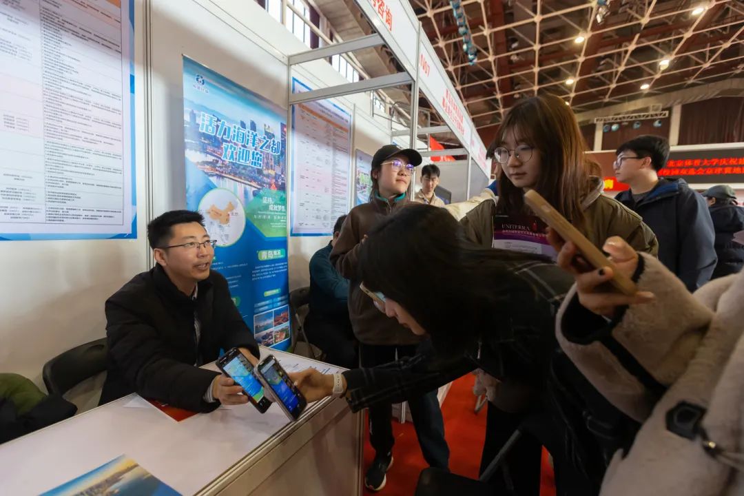 千余名毕业生来到会场,详细了解招聘岗位、要求、待遇以及职业发展情况,踊跃投递简历。参会前,同学们根据来校单位名单,事先了解行业和用人单位概况,并根据个人情况和求职意向制作简历。“未来我想从事高校体育教师工作,近一个月的时间都在忙求职的事情。”体育教育训练学专业研三毕业生赵同学讲述了当下的求职状态,“我参加了本学期学校举办的三场线下双选会。前期的求职经历让我更加清楚未来的努力方向,对就业前景也更加充满信心。”