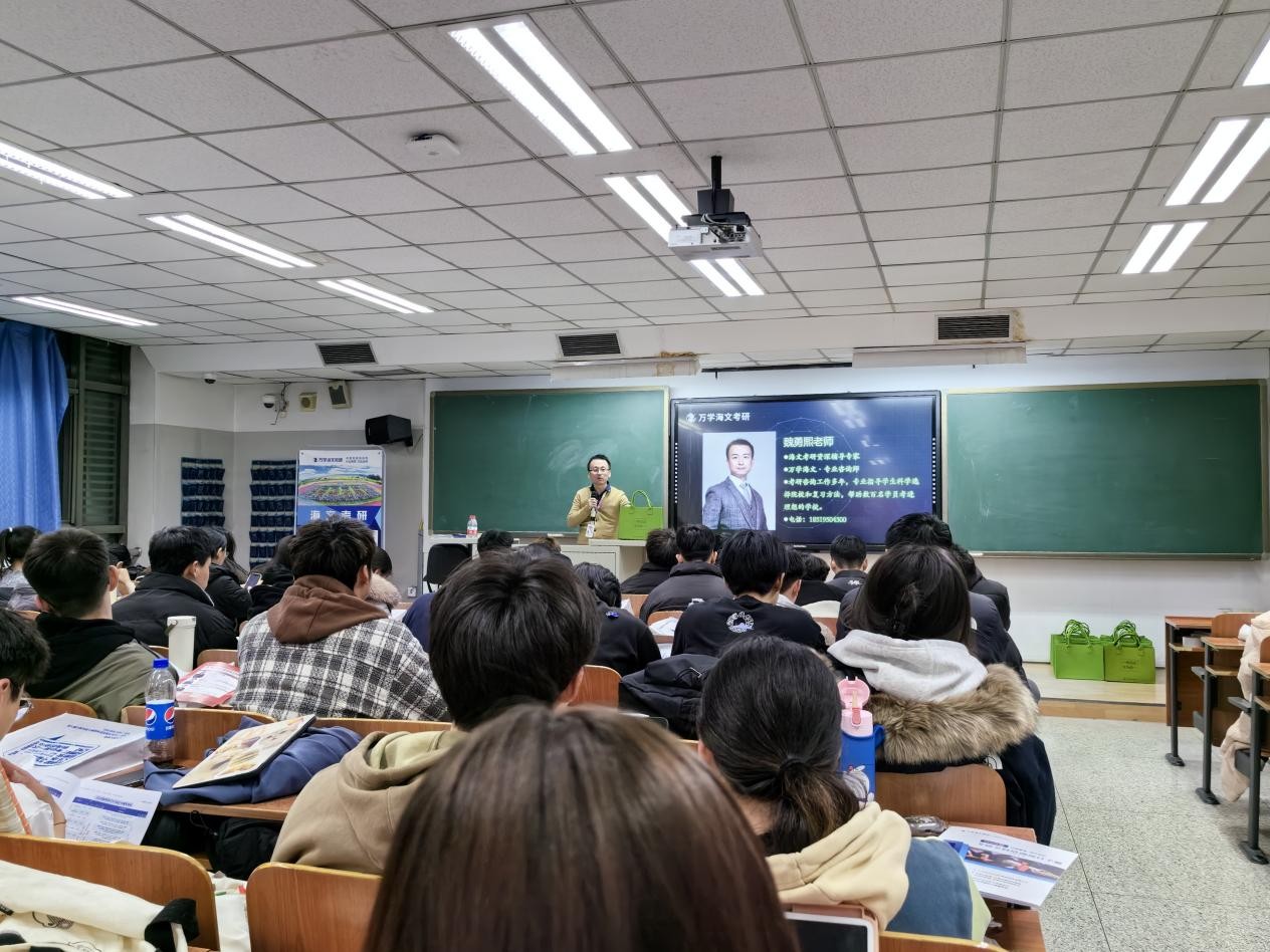 2024年3月4日,万学教育海文考研“25考研必修高分指导课”系列培训第一讲在我校顺利开展。此次指导课旨在为大三年级同学们介绍考研规划的一系列知识,为未来的学习备考提供指导和支持。讲座上,海文考研主讲名师韩啸老师深入浅出地介绍了专业选择、科目复习规划和学习方法等重要内容。韩老师还重点普及了学术型硕士和专业硕士的区别和共同点,为同学们揭示了考研之路的不同选择和可能性。