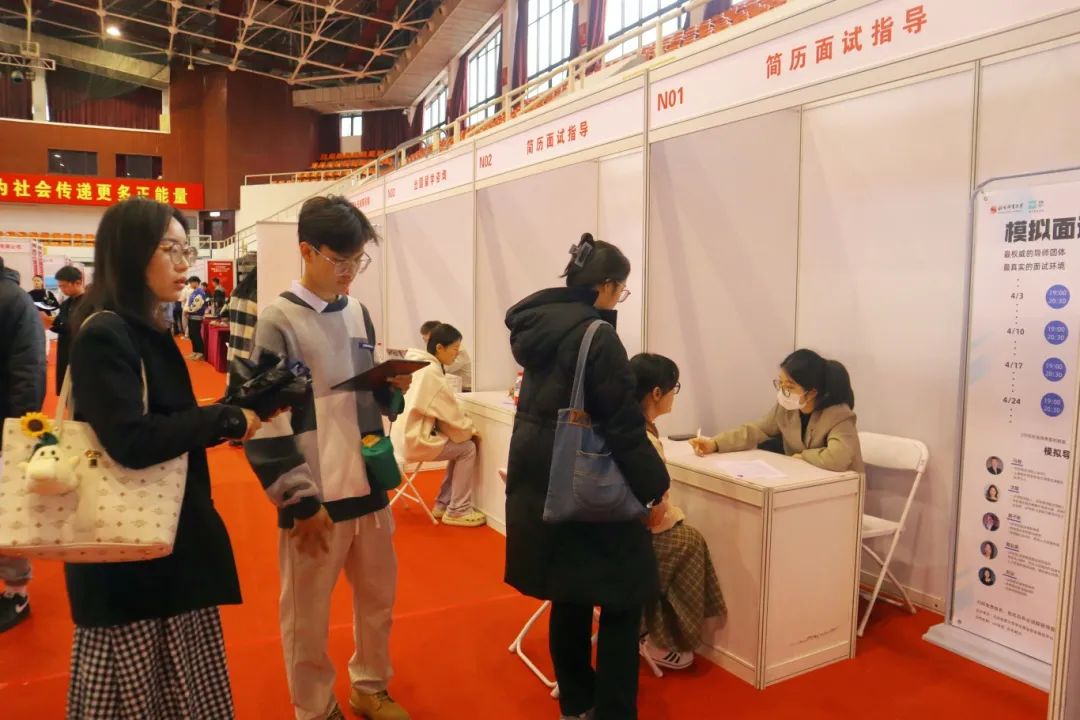 双选会现场还设有简历面试指导、志愿服务西部计划政策咨询、参军入伍政策咨询、教师资格考试、北京教师招聘政策咨询、出国留学咨询等公共咨询展位。职业生涯规划老师对毕业学生提供就业咨询服务。简历面试指导老师表示,面试官在筛选简历时更看重简历与求职岗位的目标感和匹配度,目前学生们在求职过程中最常见的问题是目标不够明确。“大学生的学习和实践经历都很丰富,但简历上大多只是在罗列经历,不够关注与求职岗位的匹配度。”老师建议,“简历既要简洁、注意排版细节,又要把相关的实习经历浓缩进去。应以目标为导向,凸显含金量。如果投递同一类岗位,可以在简历总体框架不变的情况下,根据具体岗位要求调整简历的语言;如果同时投递不同方向的岗位,建议准备侧重点不同的简历。”