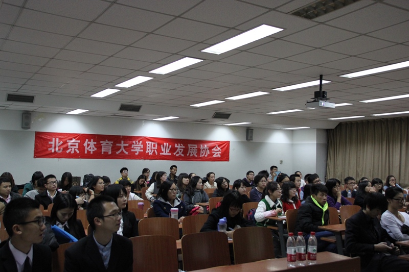 2013年11月11日,在北京体育大学教学楼413教室,为了让同学们更加了解外企,走近外企,北京体育大学职业发展协会考研部在就业指导服务中心的支持下,邀请到花旗银行北京总部贵宾理财经理、毕业于德国慕尼黑大学、有着丰富留学和在外企工作经验的岑英俊先生给同学们带来一场关于外企择人用人标准的“外企零距离”专题讲座,同学们报名踊跃。