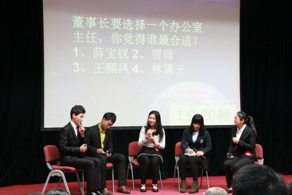 决赛分为上下两场,每场五名选手。首先进行选手自我介绍和竞职演说,由每位选手在3分钟的时间内配合演示文稿进行自我介绍,并对所应聘的职位进行演说。随后是嘉宾点评,企业代表对选手表现做出简要点评并提出建议,嘉宾普遍对我校选手提出表扬,肯定其求职现场的表达能力,并针对性的对选手诸如简历设计、应变技巧等环节的不足提出改正意见。为了考察选手的团队协作和工作协调能力,比赛特意设置“无领导小组面试”环节,五个人一组进行15分钟讨论,并统一意见、阐述理由。压力面试则更侧重于考察选手的现场反应能力和职场思维能力,由企业嘉宾结合选手表现和岗位需求对选手提问,选手当场表达自己的态度和见解。最后进行的企业选择和选手抉择将比赛推向高潮,由嘉宾企业为选手提供实习岗位,选手选择是否接受企业提供的岗位,在双方选择一致后签订协议书。