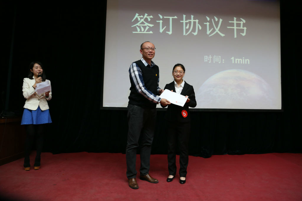 决赛现场,十名在初赛和复赛选拔中脱颖而出的同学于宣讲台上完成了出色的求职面试,评委对参赛选手的求职表现予以点评并现场提供实习offer,使每位同学都得到了来自职场专业人员的中肯评价。最终,在企业和参赛选手的双向选择后,九名同学获得了心仪的实习岗位,并与企业签订协议书。