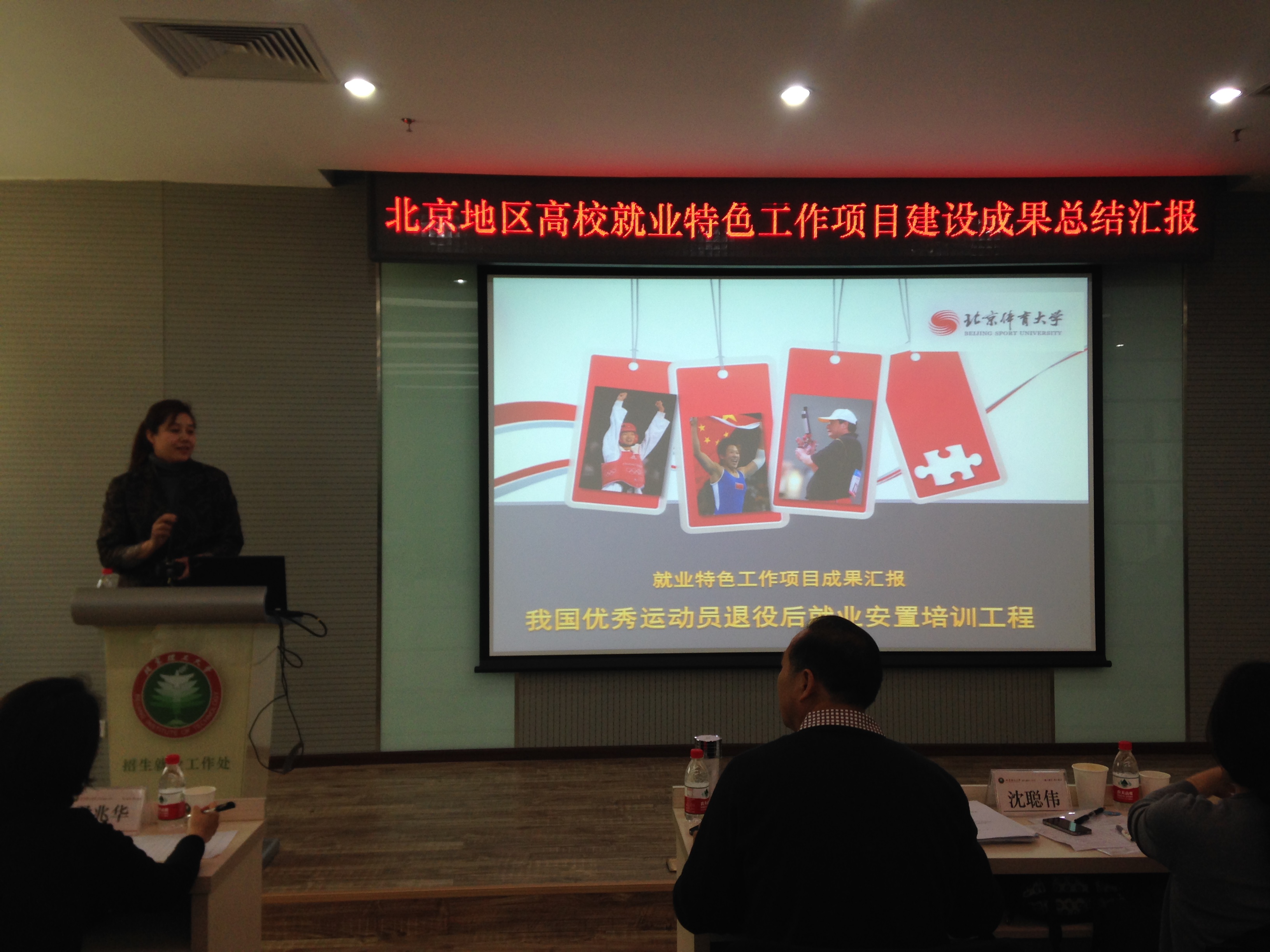 北京市教委自2012年在北京地区开展了“高校就业特色工作项目建设”。我校按照有关要求积极申报项目建设资格,并最终获批建设我校《我国优秀运动员退役后就业安置培训工程》;在建设过程中,学校高度重视,根据“高质量建设、高标准验收、高水平推广”的项目建设原则,认真按照项目计划和建设目标组织推进,取得了一定的成效。3月18日,北京市教委在北京理工大学组织举办了“就业特色工作项目建设成果总结会议”。经过充分的前期准备,我校顺利完成答辩汇报。