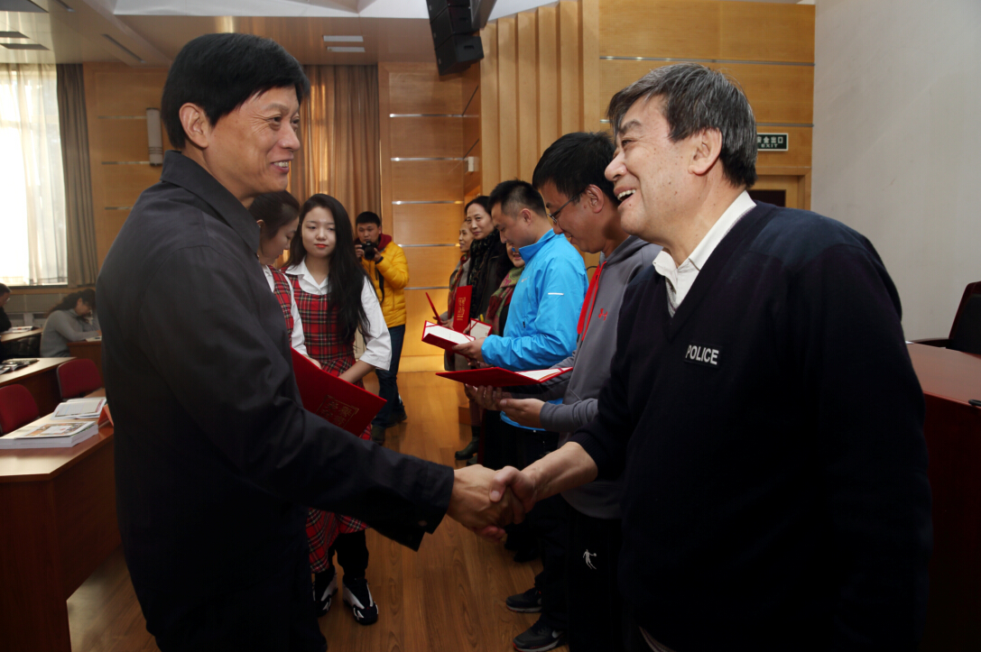 副校长刘大庆同志宣读了《关于表彰2015年毕业生就业创业工作先进集体和先进个人的决定》,并为获奖代表颁奖。为了鼓励大学生自觉投身创新创业实践中来,表彰会上还为我校的“2015年北京地区高校优秀大学生创业团队”也颁发了荣誉证书。