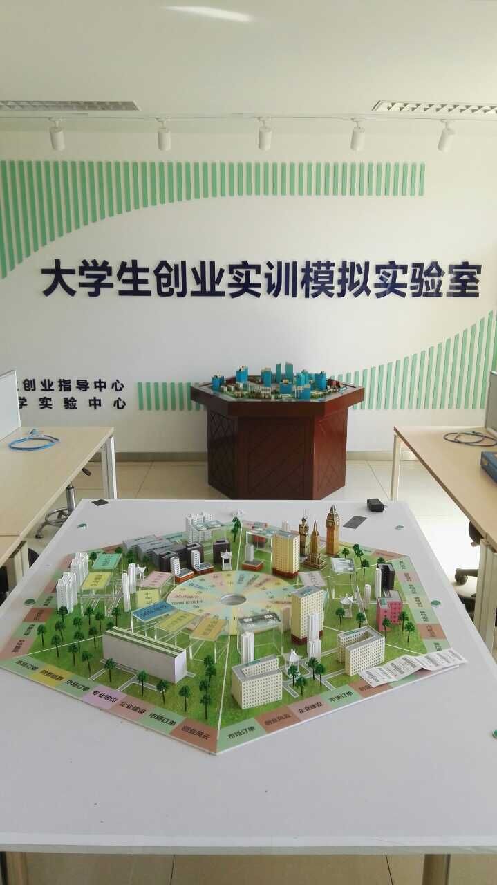 根据《北京市教育委员会关于开展示范性创业中心建设工作的通知》(京教学〔2014〕4号)文件内容与要求,对照创业工作机制、创业课程建设、师资队伍建设、创业实践支持、条件保障等方面要求,学生就业指导服务中心向北京市教委提交了申报材料,经专家评审,于2014年9月被正式列为北京地区首批“创业示范中心”建设校,拟开展“大学生创业模拟实训实验室”建设。2015年春季,学生就业指导服务中心赴浙江大学、对外经济贸易大学等创业工作开展走在前列的高校进行了实地考察,总结先进,吸取经验,并按照建设进度、建设标准开展建设。“大学生创业模拟实训实验室”设于我校教学实验楼3层,在建设过程中,得到了教学实验中心相关领导和老师们的大力支持。