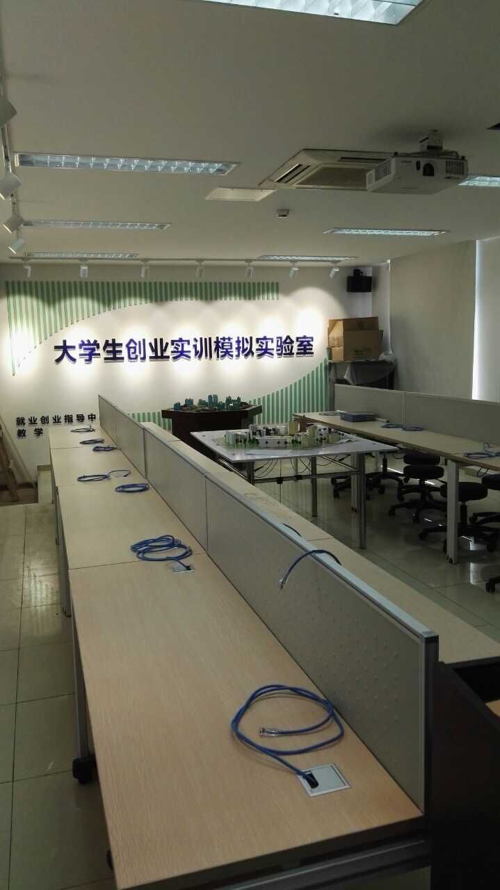 目前,我校北京市教委“创业示范中心”建设校项目“大学生创业模拟实训实验室”已基本建设完成,正在等待电脑入驻,即将正式投入使用。“大学生创业模拟实训实验室”具备创业能力测评、创业计划书设计、企业注册流程、企业运营管理实训等多方面实用功能,学生可在老师的带领下学习各个创业政策、创业需要具备的能力及知识,体验注册、选址、采购、生产、招聘、运营等多个初创企业流程,对于学生学习企业运营知识,提高创业实操能力有着实际作用。学生可以通过实验室对将来准备进行的创业实践进行实操,在创业之前体验行业的特点,为将来成功创业做好准备。
