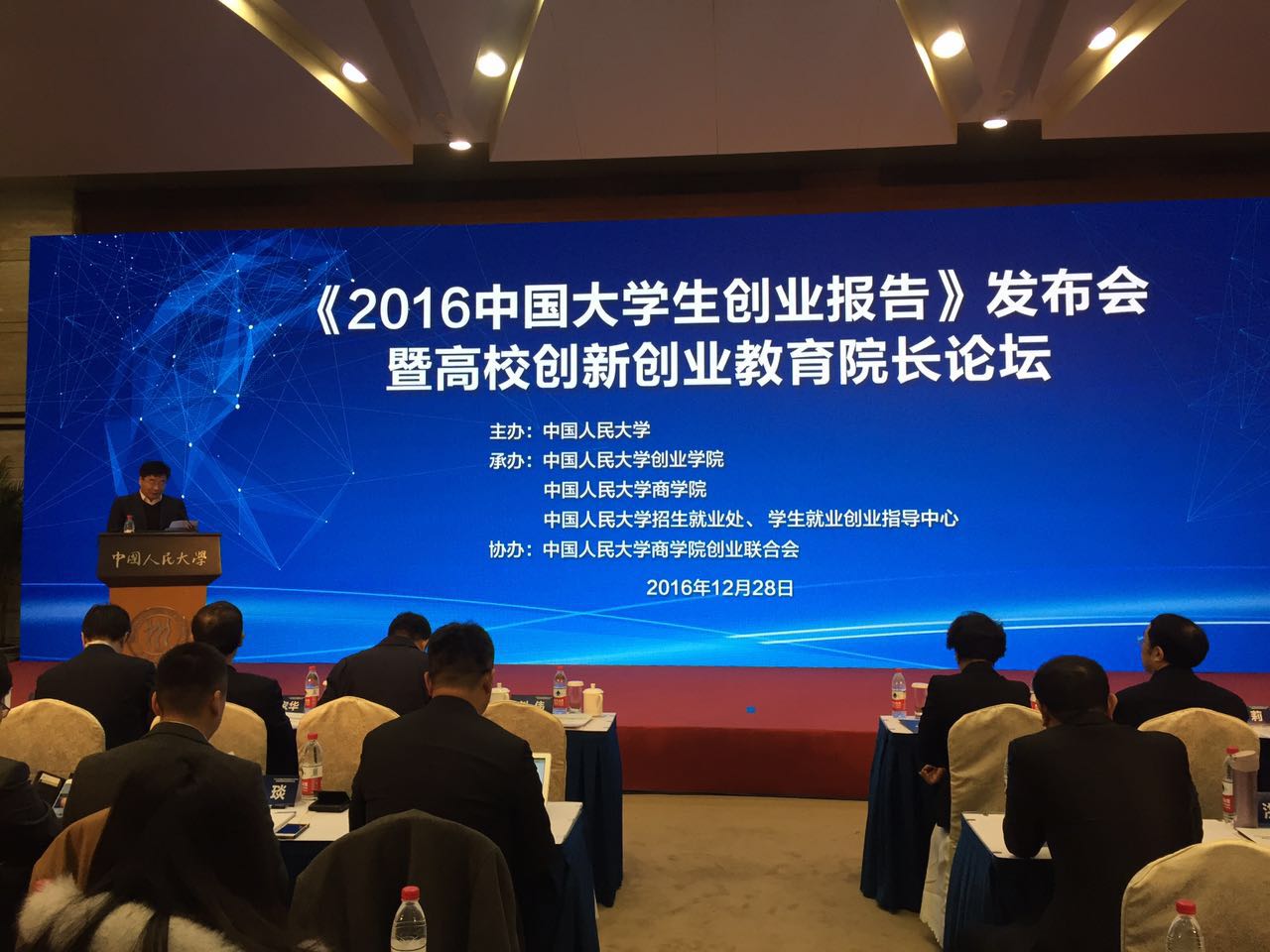 12月28日,中国人民大学召开了“全国高校创新创业教育院长论坛”,教育部全国高等学校学生信息咨询与就业指导中心主任雷朝滋、教育部高校学生司副司长荆德刚到会并讲话,中国人民大学校长刘伟致开幕辞,中国人民大学党委书记靳诺为创业教育课程专家咨询委员会的成员颁发了聘书,全国百余高校创新创业工作负责人参加了会议。中山大学、武汉大学、南京大学等高校创业学院院长分别在“创新创业课程与创业者素质培养”和“创新创业教育与培养体系融合”两个方面做了报告。