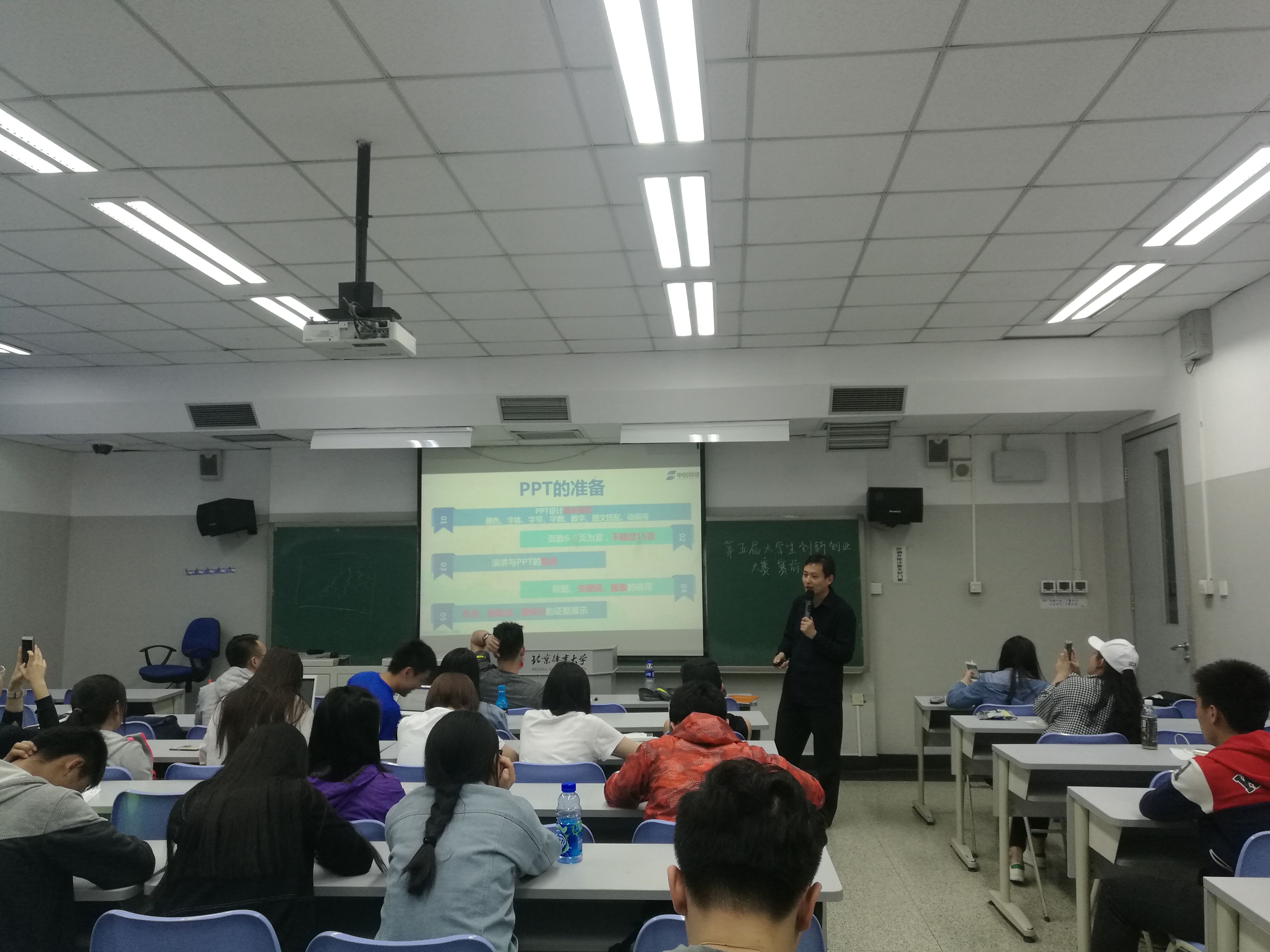 北京体育大学第五届大学生创新创业大赛正在火热报名中,为了提高选手参赛水平,并为第三届中国“互联网+”大学生创新创业大赛参赛、2017年北京地区高校大学生优秀创业团队评选和北京高校大学生创业园的入园选拔做准备,就业创业指导服务中心于4月18日精心组织举办了“第五届大学生创新创业大赛赛前培训”,特邀中青创想教育科技(北京)有限公司董事长、教育部高校创业指导教学大赛评委、教育部高校创业指导师培训专家、北京高校毕业生就业促进会专家委员会委员、北京高校毕业生就业指导中心特聘创业导师、北京体育大学特聘大学生创业指导专家徐俊祥为参赛学生进行培训。