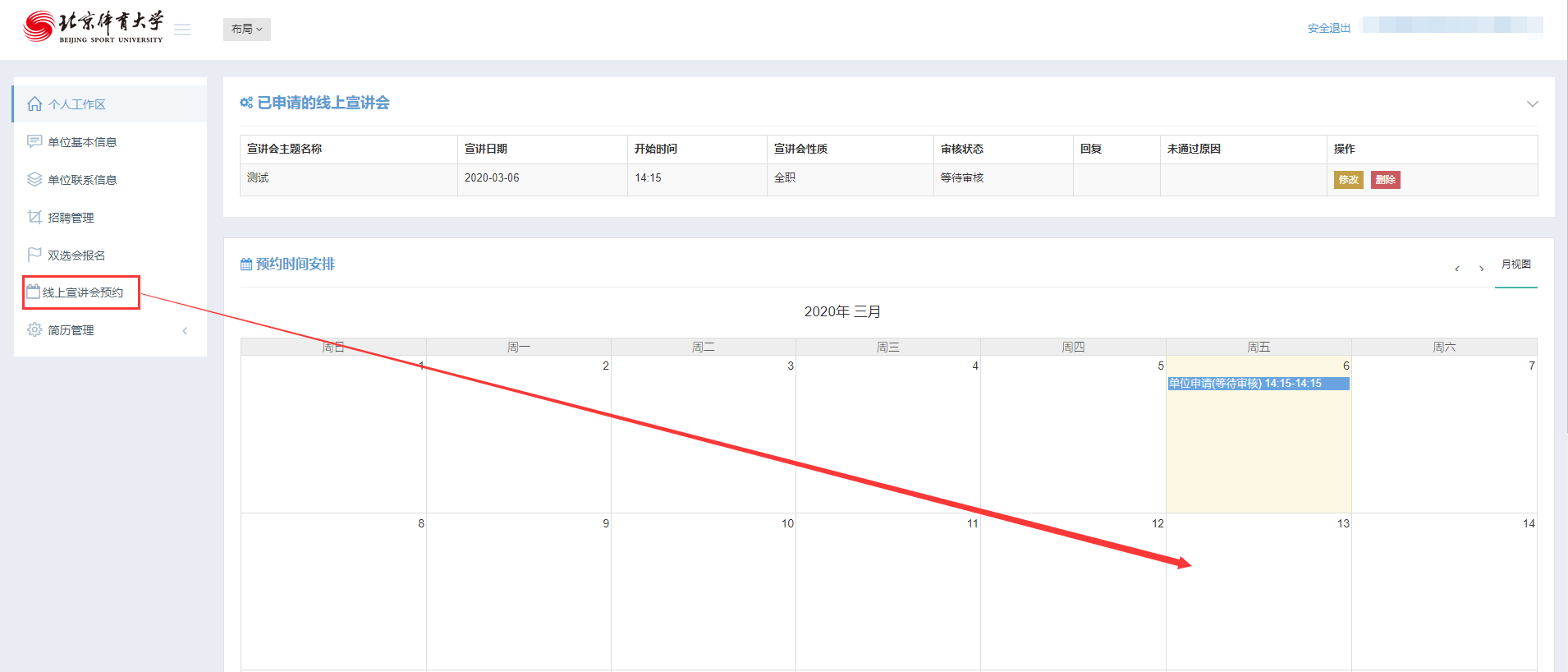北体大“线上宣讲会”功能已上线(用人单位指南)