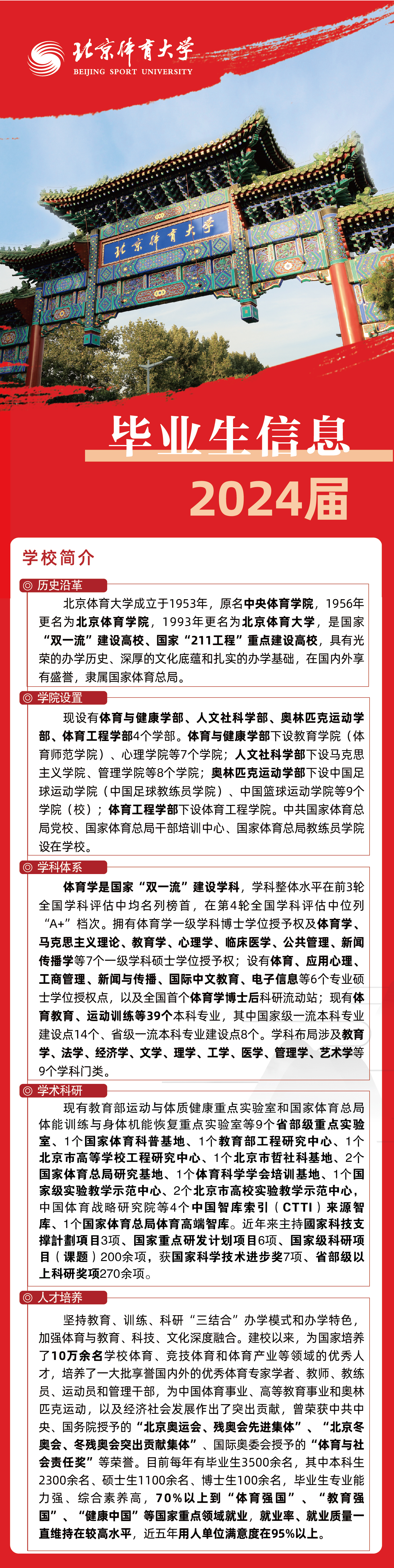 10月18日 | 8:30-11:30 | 庆祝建校70周年系列校园双选会-体育专场 | 40家 | 北京体育大学 体育馆二层环廊 |