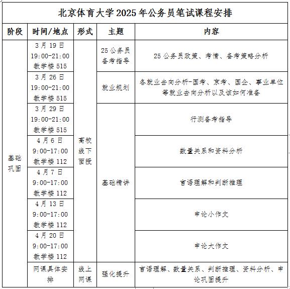 二、培训安排:3-4月份基础巩固阶段的培训内容、培训形式、培训时间、培训地点等具体安排详见下表。9-11月份实战、模拟、冲刺阶段的培训安排另行通知。