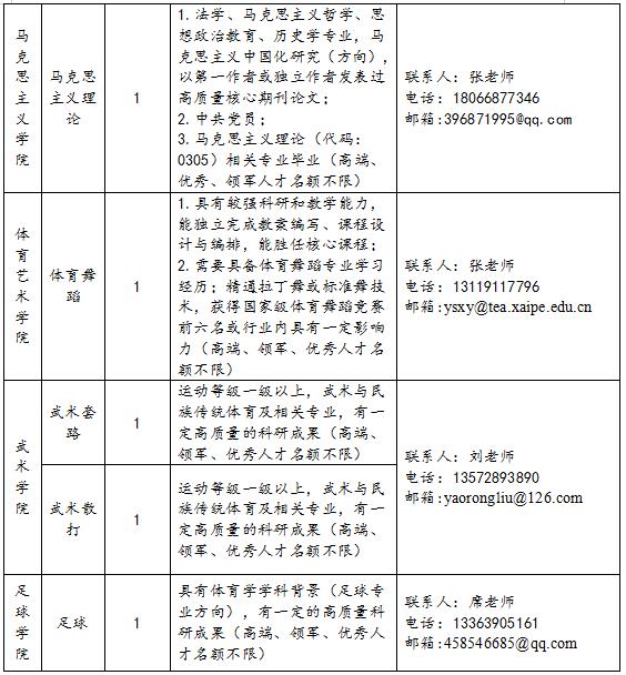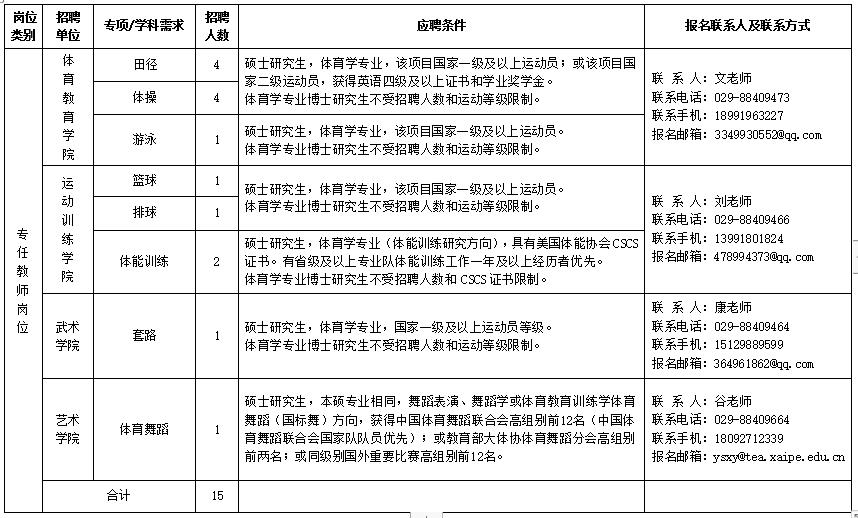 咨询部门:西安体育学院人事处 联 系 人:马老师 朱老师