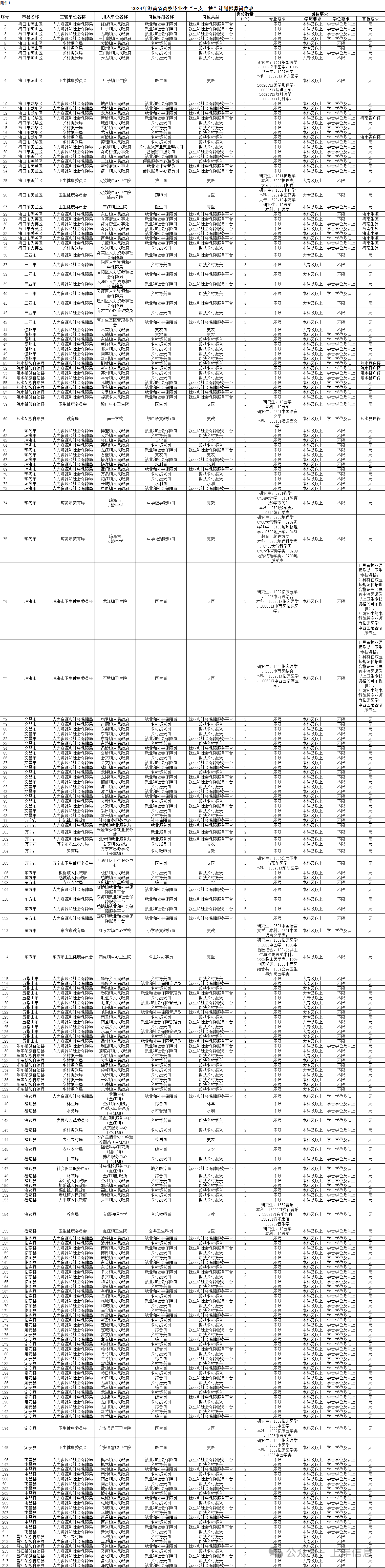附件:1.2024年海南省高校毕业生“三支一扶”计划招募岗位表